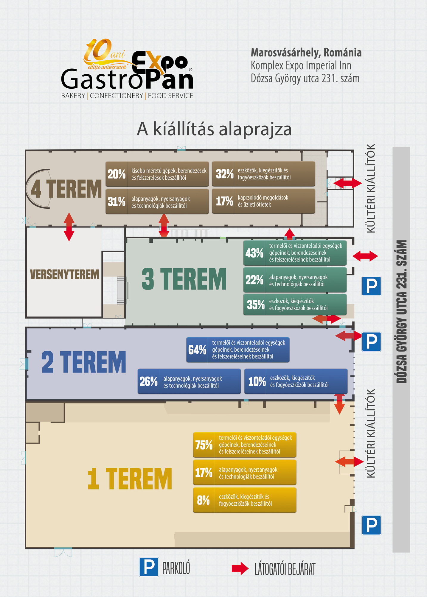 Idén a szervezők négy kiállítási csarnokkal várják a résztvevőket, valamint egy tágas külön teremmel, amely otthont ad a GastroPan Versenyeinek. A marosvásárhelyi kiállítási központ új vezetősége felújította, modernizálta a helységet így méltó ahhoz, hogy otthont adjon egy ilyen kaliberű kiállítás versenyeinek és bemutatóinak.